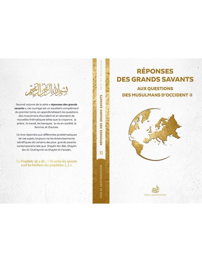 Second volume de la série « réponses des grands savants », cet ouvrage est un excellent complément du premier tome, en approfondissant les questions des musulmans d’occident et en abordant de nouvelles thématiques telles que la croyance, la prière , le travail, les banques, la vie en société, la femme, et d’autres.